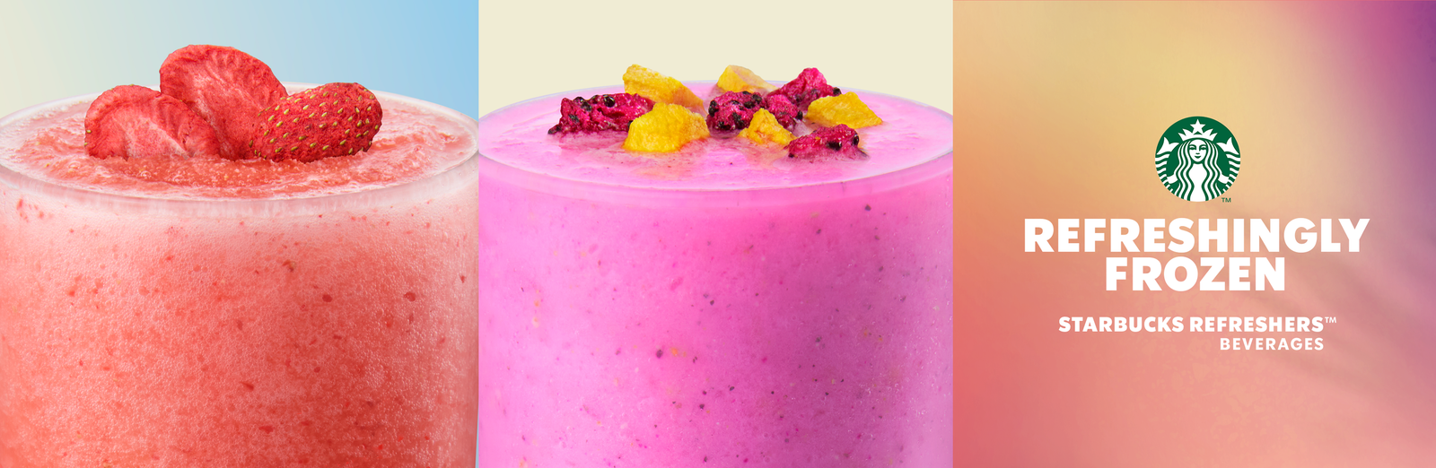 Grab a friend and enjoy our Strawberry Yuzu Komfrucha™ together. Buy one and get the second half price, for a limited time. Bright, refreshing and made to be enjoyed in store — find a Starbucks near you today.
